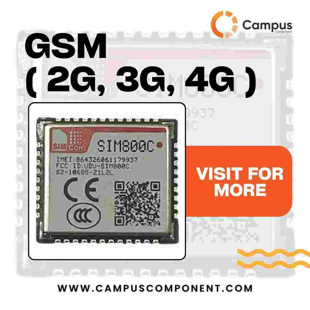 2G GSM Module – Primarily used for SMS and basic data communication. Ideal for simple IoT devices and remote control systems.