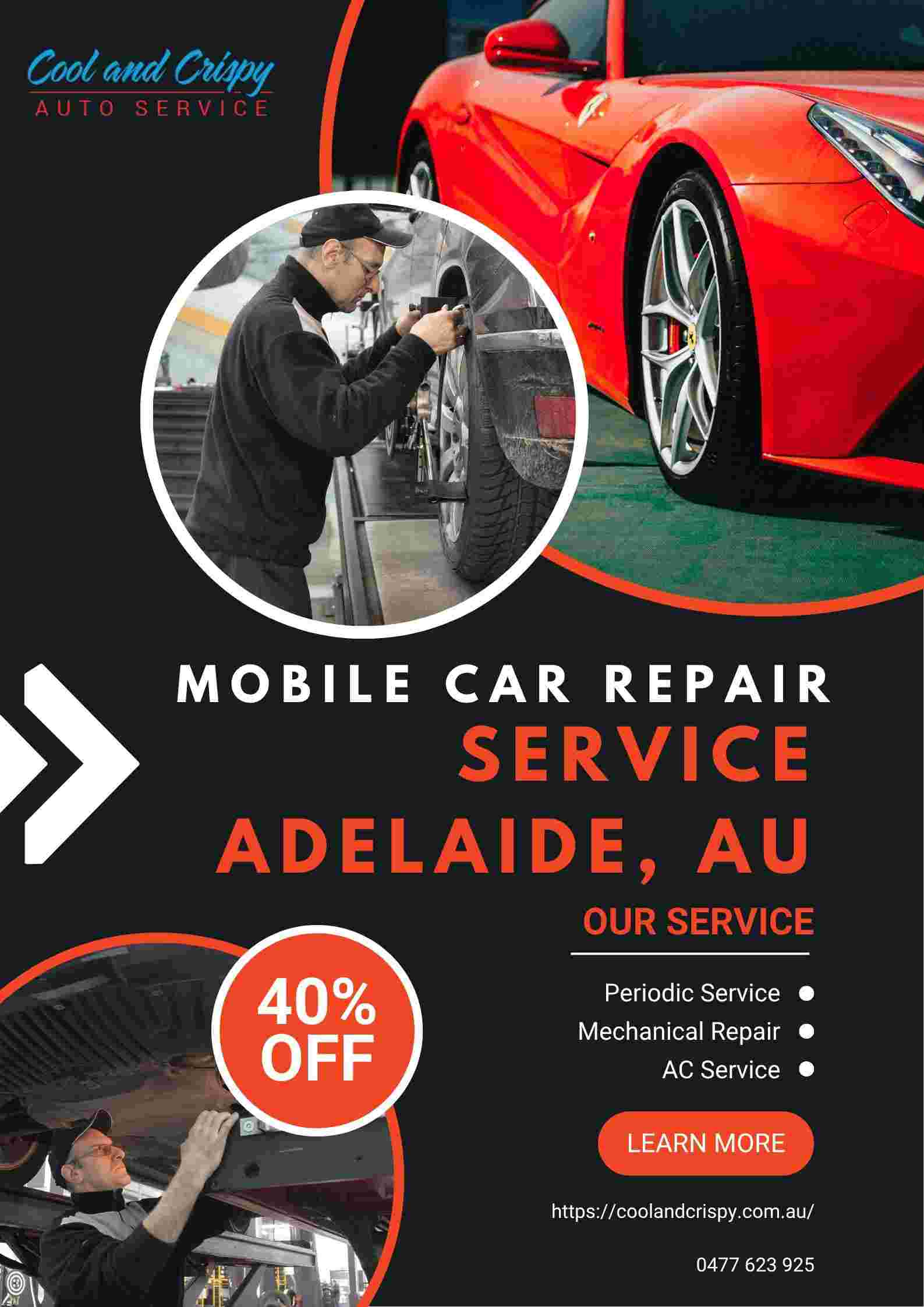 Cool and Crispy offers expert Mobile Air Conditioning Services & Repairs, mobile repairs to cars, log book services, brake services and much more: all in front of your door! No matter where you are at home or at work, our certified technicians offer prompt, professional repairs and services for cars throughout Adelaide. Get rid of the hassles of workshops and let us provide top-quality auto care to you. From routine maintenance to diagnostics, We ensure that your vehicle remains in good condition. Make an appointment for your mobile service now by visiting our website.