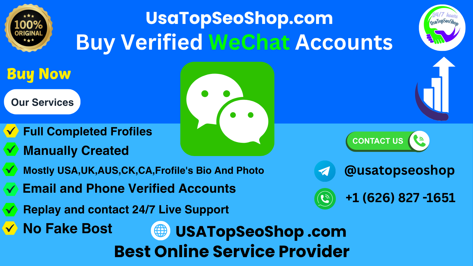 Buy WeChat accounts now from USATopSeoShop.com and quickly maximize your social connections. Our quality accounts are safe, verified, and ready for personal growth or business growth. Your marketing campaigns with authentic, reliable accounts